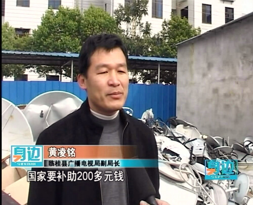 【同期声】临桂县广播电视局副局长 黄凌铭:“如果要安装的话,需要到当地的广电部门申请,如果是符合条件的话,我们可以根据直播卫星的有关要求,给予办理。”