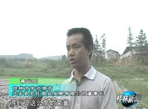 【同期声】桂林市劳动模范,兴安县宏旺菌业发展有限公司董事长蒋远旺:“我只是做了一点点我喜欢做的事情,我爱好做的事情,得到了这么高的荣誉,我感到很荣幸。我会以这个为鼓励,以后我会把这个食用菌产业做到更好,做大做强,会带动更多的农民从事食用菌产业脱贫致富,为我们建设富裕、文明、和谐的新农村作出更大的贡献。”