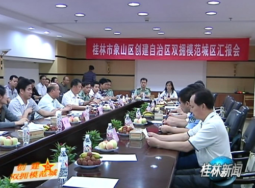 会上市委宣传部、市人力资源和社会保障局、市教育局、市国防动员委员会相关负责人作了情况汇报。刘宗海在听取我市情况汇报后指出,桂林市是一个已经获得全国双拥模范城六连冠和自治区双拥模范城七连冠的城市,多年来桂林对创建双拥模范城工作十分重视,特别是桂林驻军多,军转安置工作压力大,任务重,但是各级党委政府能按要求完成好各项工作,保证了部队的稳定,为部队和地方发展作出了贡献。刘宗海希望桂林军地双方,下一步结合双拥模范城考评要求,扎实做好迎检工作,为争创全国双拥模范城七连冠和自治区双拥模范城八连冠作出努力。