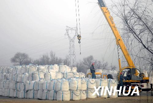 资料图片:2008年12月12日,包钢集团工人在装载稀土下游原料。 新华社记者 张领 摄