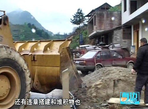 【同期声】龙胜路政执法大队副大队长 程振清:“这些违法行为都对我们公路造成了影响,这影响就是第一容易造成水排不出去,直接造成公路的损坏,还有违章搭建和堆积物也对公路上的视线造成很大的障碍。”