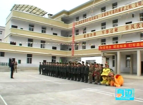 【同期声】武警桂林市支队四中队指导员高圣:“今天我们武警桂林市四中队很荣幸,迎来了2011年度新兵。他们通过四个月艰苦的训练,从新兵营加入了四中队这个光荣的集体,正是由于这一拨一拨的官兵献身国防,奉献青春,才确保了我们社会长治久安,经济稳步发展。”
