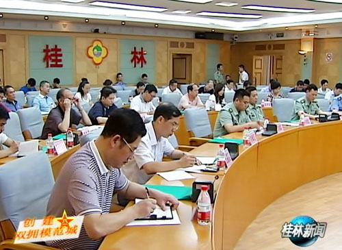 刘君指出,按照全国双拥办的通知要求,新一轮创建工作检查考核组将于7月份,深入到各地各部队进行考核检查。桂林是一个连续6次荣获全国双拥模范城的城市,夺取“七连冠”事关重要,各相关部门一定要深化对双拥工作的认识,深入开展创建活动,要本着“部队所需、官兵所盼、地方所能”的原则,更多更好地为驻军部队解决一些实际困难,当前全市正在想方设法为随军家属提供技能培训,进行送岗上门和从市财政出资补助等方法,解决随军家属的就业问题,但是随着国家用人制度的改革,安置工作还是有难度,所以各相关部门要积极探索军民结合发展新路子,形成工作合力,统筹解决好双拥工作中出现的各种问题,为我市夺取全国双拥模范城“七连冠” 和自治区双拥模范城“八连冠”打下坚实基础。