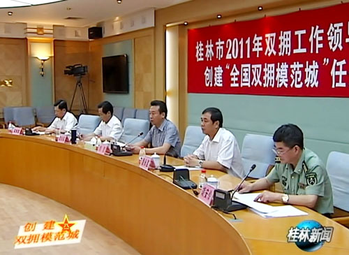 市委书记、市人大常委会主任、市双拥工作领导小组组长刘君;市委副书记、组织部长、市双拥工作领导小组副组长潘永建;市委常委、政法委书记蒙永福、副市长蒋炳穗、桂林警备区政委胡安玲大校等参加会议。