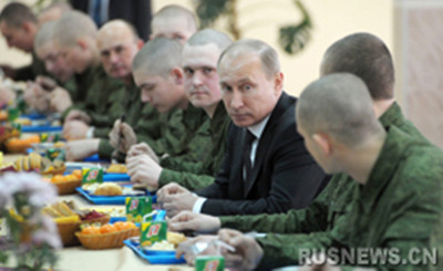 中新网2月23日电 据俄新网报道,俄罗斯总理普京22日在视察塔曼斯卡亚摩托化步兵旅时与国防部长阿纳托利·谢尔久科夫一起试吃了部队伙食,并回答了一系列军人的问题。