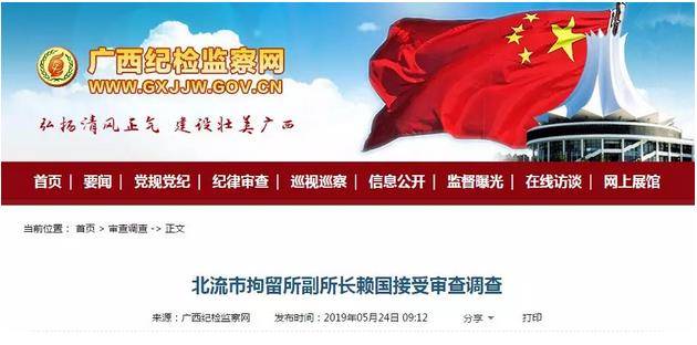 北流市拘留所副所长赖国涉嫌严重违纪违法,目前正在接受纪律审查和监察调查。