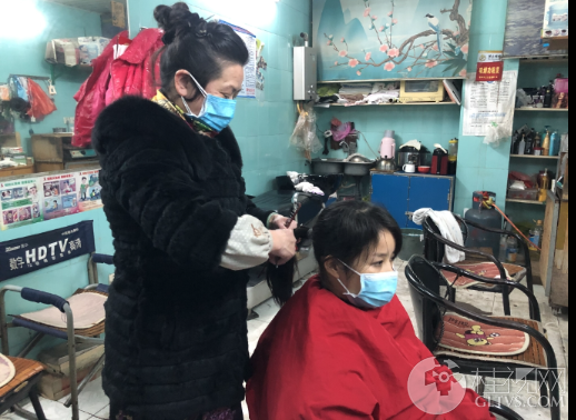 由于理发店很少开门营业,其同事在值班室为马玉剪头发