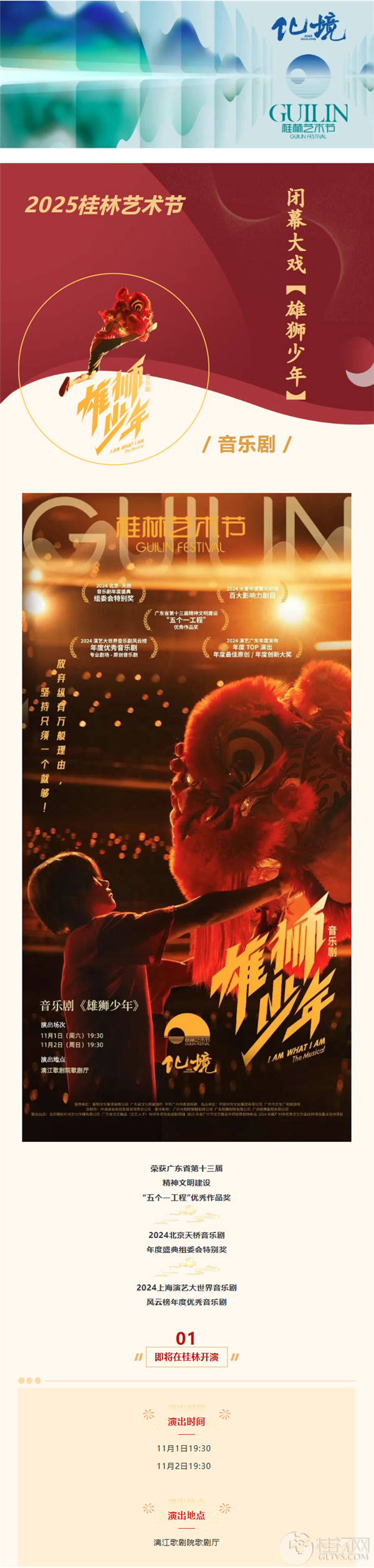 醒狮跃动漓江畔!2025桂林艺术节闭幕大戏音乐剧《雄狮少年》即将燃情开演!