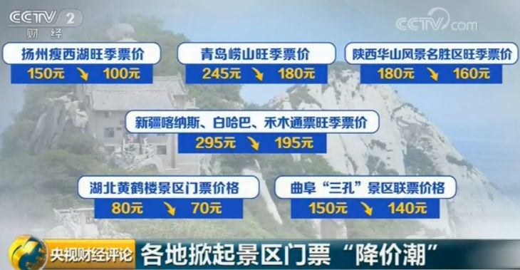 陕西华山风景名胜区旺季门票价格由180元降为160元;
